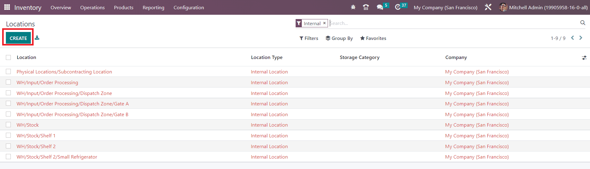 From the storage locations available in the warehouse, you can allot a location for scrap. Let’s look at how Odoo helps you to manage scrap location in your storage. We already discussed the configuration and management of storage locations in the Odoo Inventory. Following the same method, you can configure a location for scrap also. For this, you can go to the Locations menu available under the Configuration menu. A new window will open as shown below.