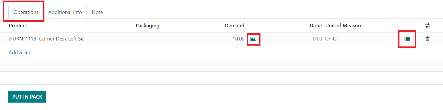 Similarly, you will get an additional button near the Unit of Measure field that will show the detailed operations view.