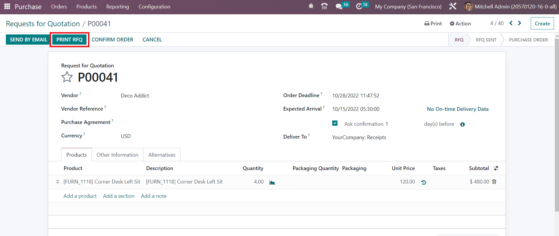 We detailed the creation of RFQ in the Purchase module and now, we are going to take a look at the management of the Purchase Order in Odoo.