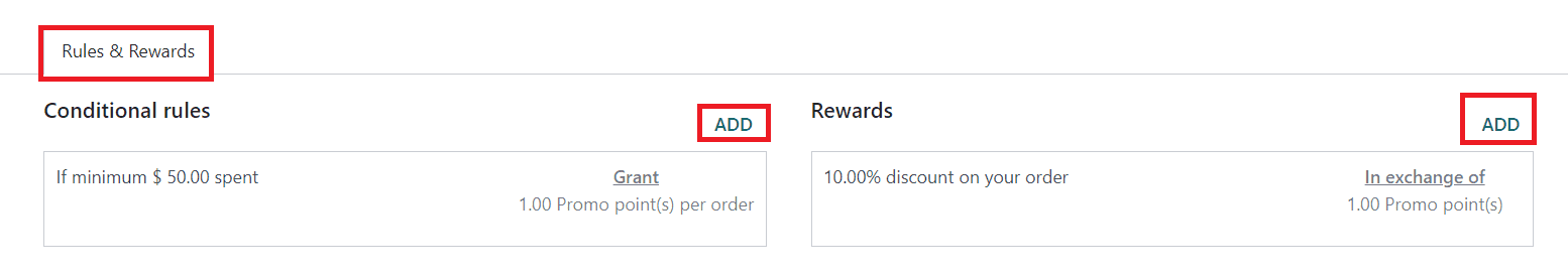 Under the Rules & Rewards tab, you can set rules and suitable rewards using the Add button.
