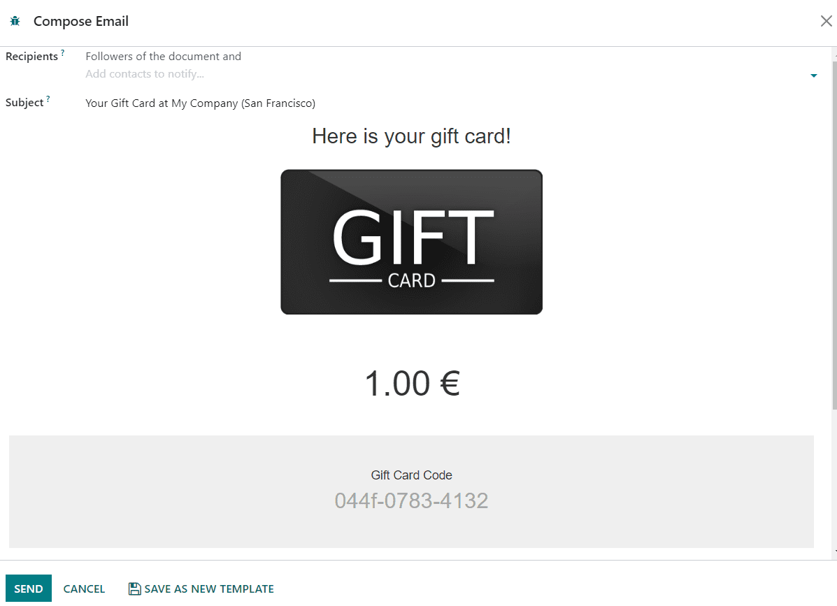 Here, you can mention the name of the qualified customers in the Recipients field and use the Send button to send the gift card.