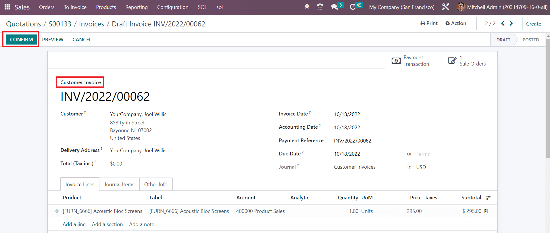 By clicking on the Confirm button, you will be able to confirm the invoice.