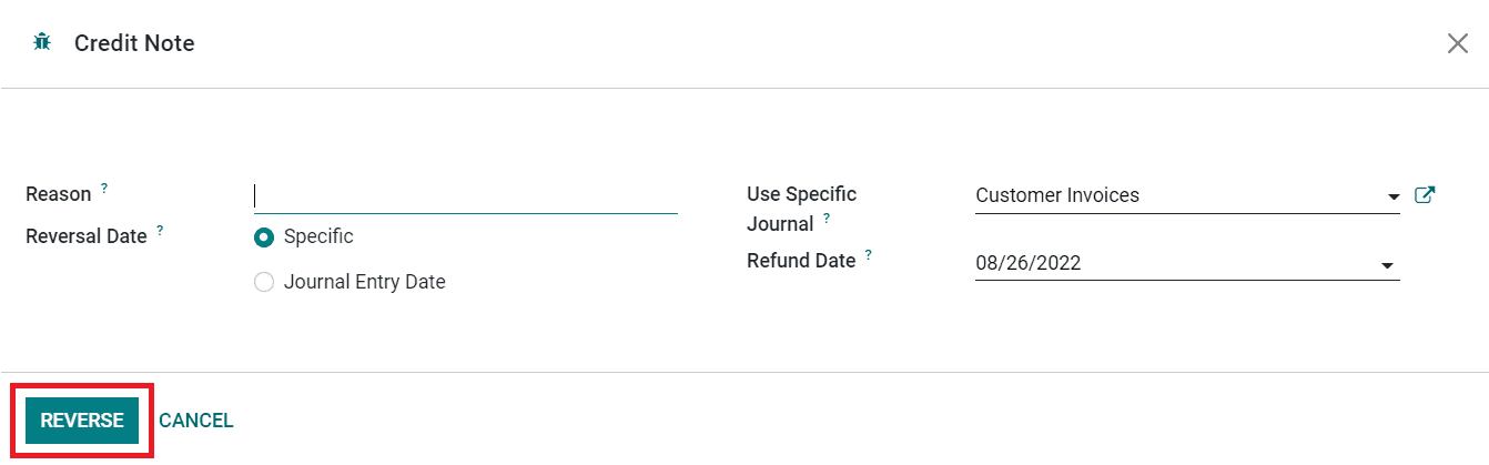 A pop-up will appear to mention the Reason, Reversal Date, Specific Journal, and Refund Date.